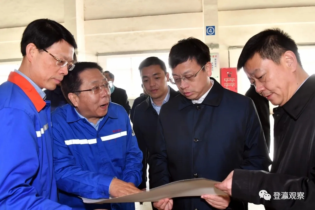 ▲市长曹路宝察看金风科技整机总装厂和16MW传动实验室