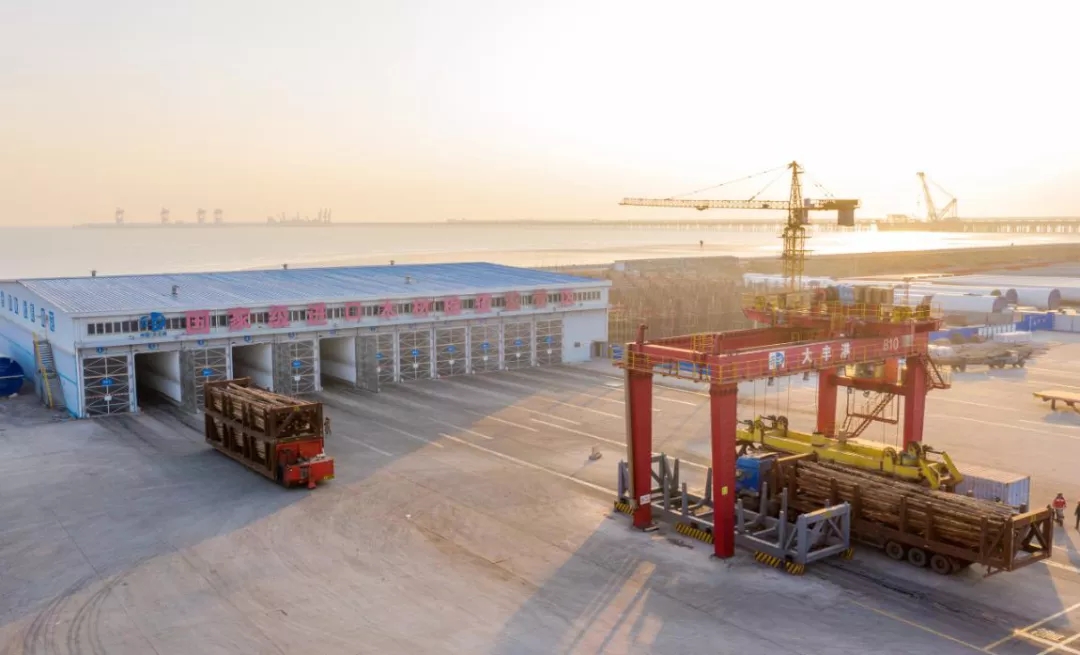 生产运营忙的同时,该项目二期工程正在加快建设,将建设十二个熏蒸库和设备间、投药间、中控室、配电房等,同时配套改进设计的全套熏蒸系统设备,预计今年8月底建成投产。项目建成后,盐城港大丰港区可实现年新增100万方进口原木的溴甲烷检疫熏蒸处理能力,进一步完善大丰港区木材产业链,切实提升盐城港整体配套服务能力,为腹地木材产业高质量发展助力赋能。
