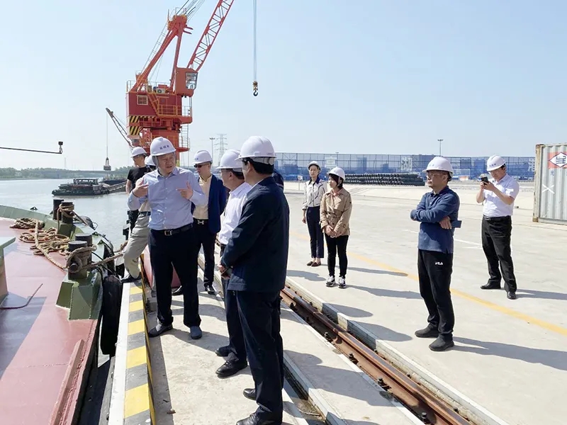 5月22日,枣庄市交通运输局党组成员、枣庄市港航和机场建设发展中心主任邵学良一行到陆港集团考察内河港口建设情况。市交通运输局党委委员、市港口管理局副局长赵飞,海角社区 党委委员、董事、副总经理陈正华参加考察。