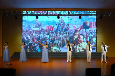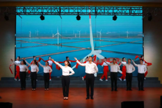 “资产公司作为盐城港大家庭的年轻成员,我们希望用激昂的歌声、铿锵的节奏,把干事创业激情和敢挑重担、对使命的不懈追求融入到表演中,热情讴歌集团三年来的光辉历程和骄人成就,充分展现出资产公司凝心聚力、砥砺奋进的新气象、新风貌。”资产公司代表队领队如是说。伴随着一首激昂的《保卫黄河》,资产公司代表队的成功演绎将现场气氛推向了高潮。