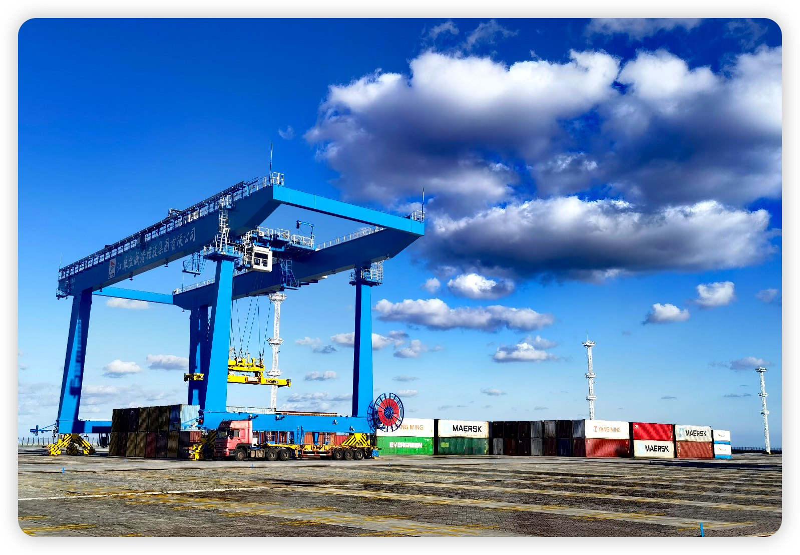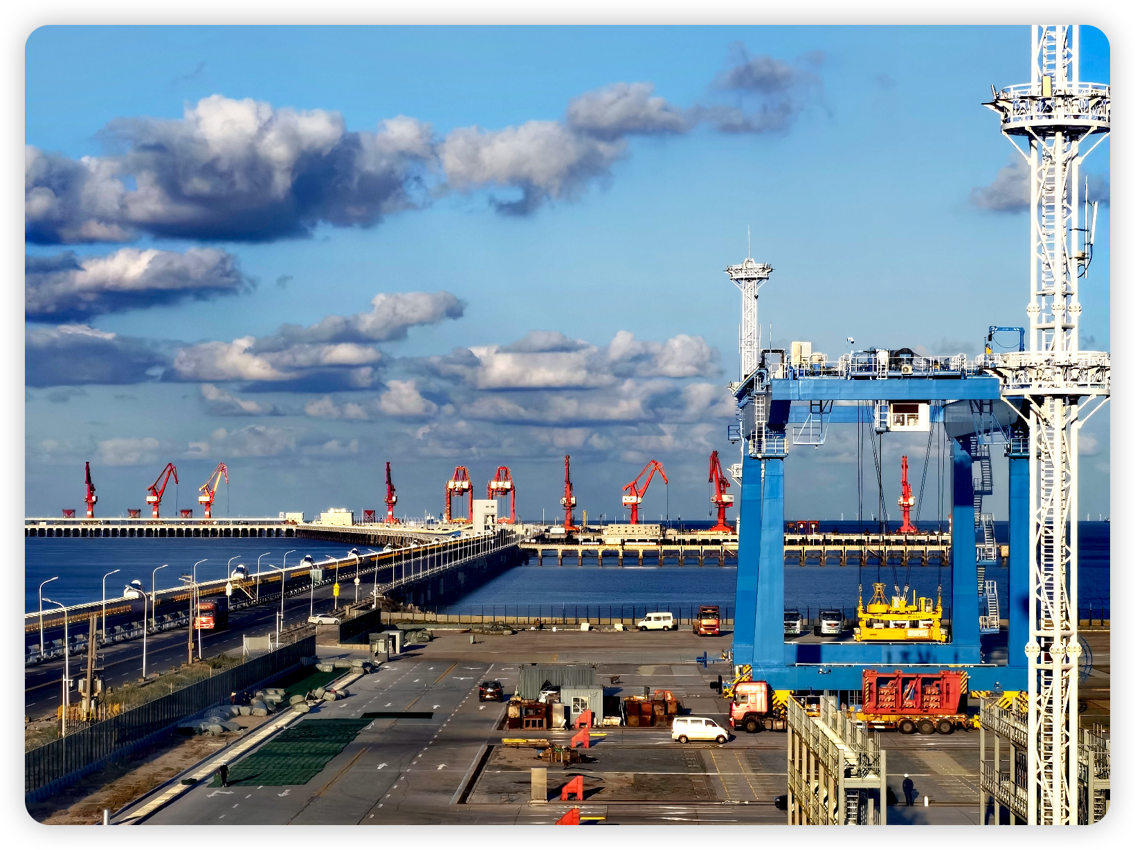 冬日暖阳照在海平面上。盐城港的各港区,龙门吊升降腾挪,集卡穿梭不息,一片繁忙。