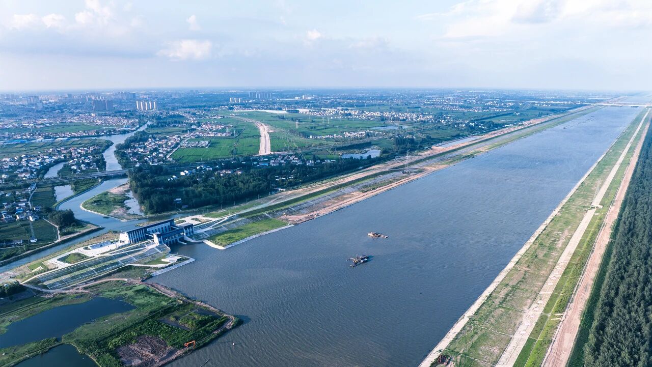 在滨海县张家河闸站,一座大型泵站已然矗立。5台泵机轰鸣作响,清澈的淮水以每秒60立方米的流量奔涌向东,直扑黄海。该工程是淮河入海水道二期工程的重要组成部分,从2022年7月开工到建成投运,仅用17个月,跑出了建设“加速度”。闸站投运后,滨海县城防洪标准从不足五年一遇,提升至十年一遇,有效保障了县城防洪安全与经济社会发展。