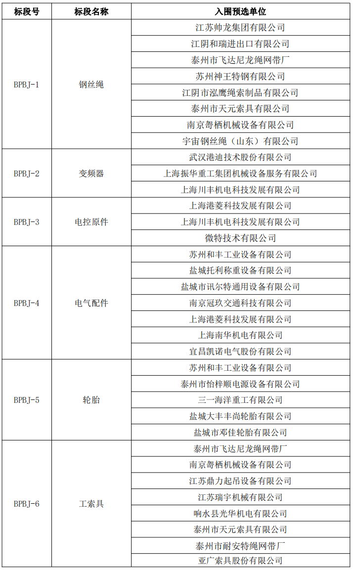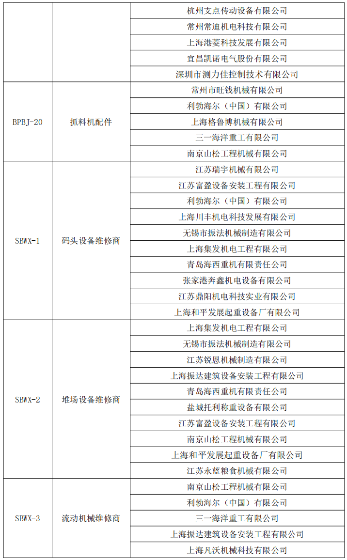 根据招标投标的有关法律、法规、规章和本项目招标文件的规定,2023年港口设备维修材料备品备件合格供应商预选名录、2023年港口设备维修服务供应商预选名录开标和评标工作已经结束,入围的预选单位已经确定。现将入围的预选单位名单公示如下: