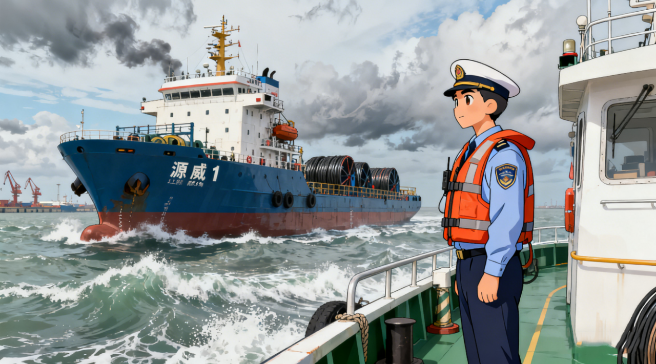 作业过程中引航员手持对讲机精准发令,拖轮协同配合稳控船身;调度室里,实时数据跳动间,靠离泊时间被科学压缩。这高效的配合,为海缆吊装、规范绑扎挤出了宝贵时间,让每一批海缆都能按时登船,也让全年引航任务实现“零差错”。