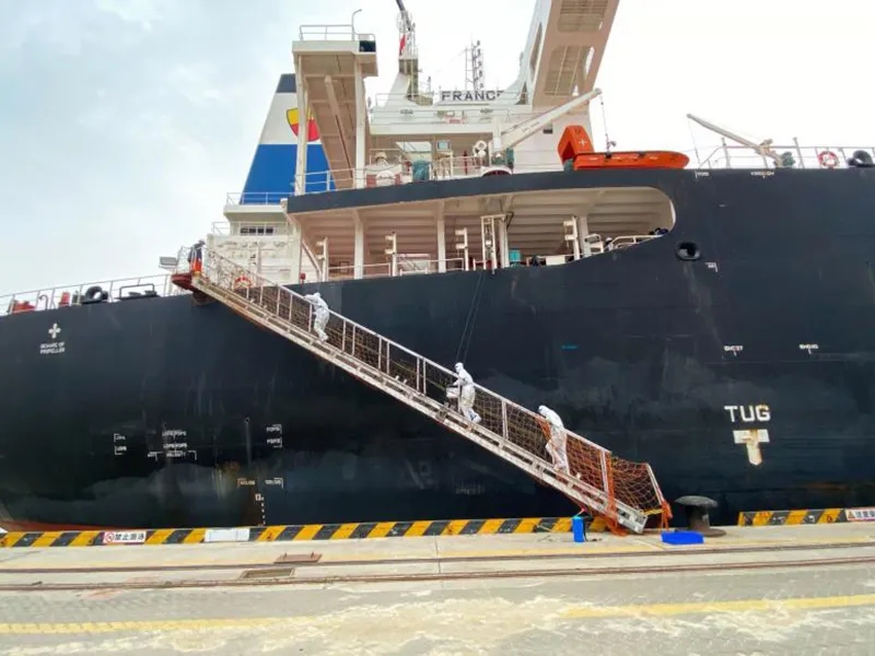 “弗朗西斯科”号轮原计划二月中旬靠泊大丰港区进行货物装卸,因疫情防控、天气恶劣等因素影响,导致大丰港区封港,船只无法正常靠岸。作为收货方的江苏博汇纸业公司,因长期收不到货,导致库存极度紧张,面临着纸机停产的困境。集团第一时间了解情况后,当即决定利用盐城港“一港四区”泊位资源,将该船转港至滨海港区卸货,解决客户燃眉之急。在集团党委的统一指挥下,相关港区主动对接,多方联系,及时掌握船舶动态,合理调配人力资源,全力保障“弗朗西斯科”号外籍货轮顺利入港停泊。