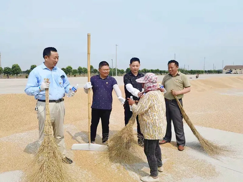 “别担心,公司近期成立了党员先锋队,专门帮助咱们这边有困难的农户,您放心这边有我们在,保证在雨前将小麦全部售出。”