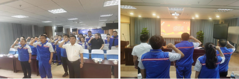 在嘹亮的国歌声中,港口公司党总支2名预备党员入党宣誓仪式正式开启,面向鲜红的党旗,全体党员举起右拳,用最真诚、最坚定的声音许下了郑重誓言,表达了对党的无限忠诚和为共产主义奋斗终身的决心。随后,宣誓党员代表向党组织做出了永跟党走、践行宗旨、认真学习的保证。港口公司党总支主要负责同志代表公司党总支向全体党员提出铭记历史功绩,坚定不移永跟党走;坚定理想信念,强化为民服务能力;坚持理论学习,强化个人党性修养;坚守实干精神,发挥先锋模范作用等四点要求。仪式在《国际歌》中圆满结束。