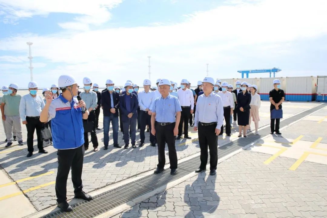 与会人员集中观摩了大丰港区集装箱堆场项目现场并听取相关汇报,随后集中前往粮食码头分公司,现场观摩党建、群团开展工作亮点,查看党组织标准化台账资料、党群活动中心规范化建设和党建工作宣传氛围等情况。