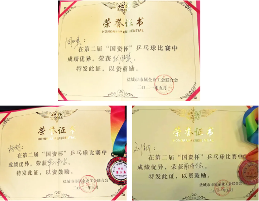 比赛过程中,选手们热情满满,积极投入比赛中,每场比赛都全力以赴、顽强拼搏,赛出了自己的水平,赛出了盐城港人的风采,淋漓尽致地展现出“团结精进、务实创新、开放包容、追求卓越”的企业精神,最终周旭东获得“优胜奖”、杨晓东获得“单打第二名”、刘钢获得“单打第五名”的优秀成绩。