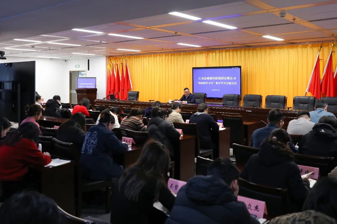 会议传达学习了习近平总书记在中共中央政治局民主生活会上的重要讲话精神;学习了盐城市委八届九次全会会议精神,学习了集团党委一届八次全体(扩大)会议精神;观看专题片——加强党对进一步深化改革的领导。