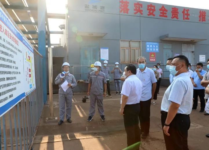 周正雄一行实地察看了中南汇石化仓储公司、大丰港区集装箱码头,详细了解各类项目安全生产和疫情防控工作情况。