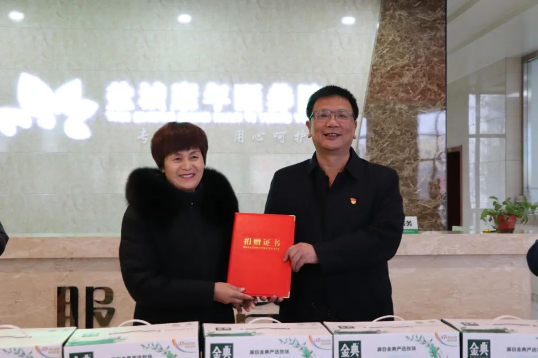 康年颐养院成立于2017年,是我市养老事业发展的重点单位,也是我市唯一一家省级“五星级养老单位”,其服务质量等各方面均得到了各级领导的认可。目前该院已入住400多位老人,其中五保老人约100人。活动现场举行了慰问物资捐赠仪式,徐桂荣代表康年颐养院向集团颁发捐赠证书。