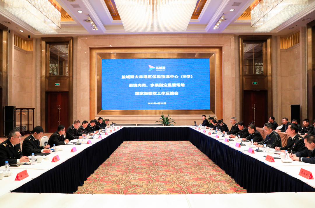 在下午召开的现场反馈会上,国家验收组通报了本次验收情况,对盐城市政府支持盐城港保税物流中心(B型)进境肉类、水果指定监管场地建设工作给予赞扬,并对监管场地建设工作的整体情况给予肯定。国家验收组认为,盐城港保税物流中心(B型)进境肉类、水果指定监管场地符合验收标准,一致同意通过验收。