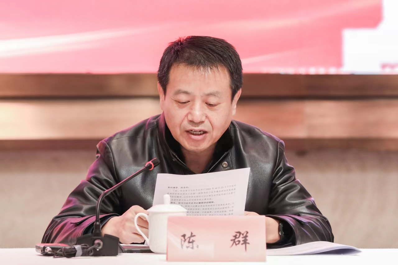 会上,陈群传达学习了习近平总书记同中华全国总工会新一届领导班子成员集体谈话的重要讲话精神 ,以及中华全国总工会第十八次全国代表大会会议精神。