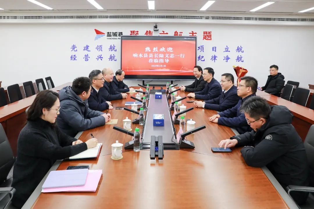 陆帅对陆文忠一行的到来表示欢迎。他说,2023年,盐城港以推动高质量发展为根本着力点,紧扣“提质增效”“项目立航”两个主题年活动,狠抓落实、务实高效,首次进入全国沿海港口前20强,提前两年半完成集团“十四五”既定目标。未来,盐城将持续关注响水县经济发展,加大与地方政府之间的沟通力度,狠抓响水港区项目建设,切实与响水县委、县政府心往一处想,劲往一处使,共同为地方经济发展做出更大贡献。