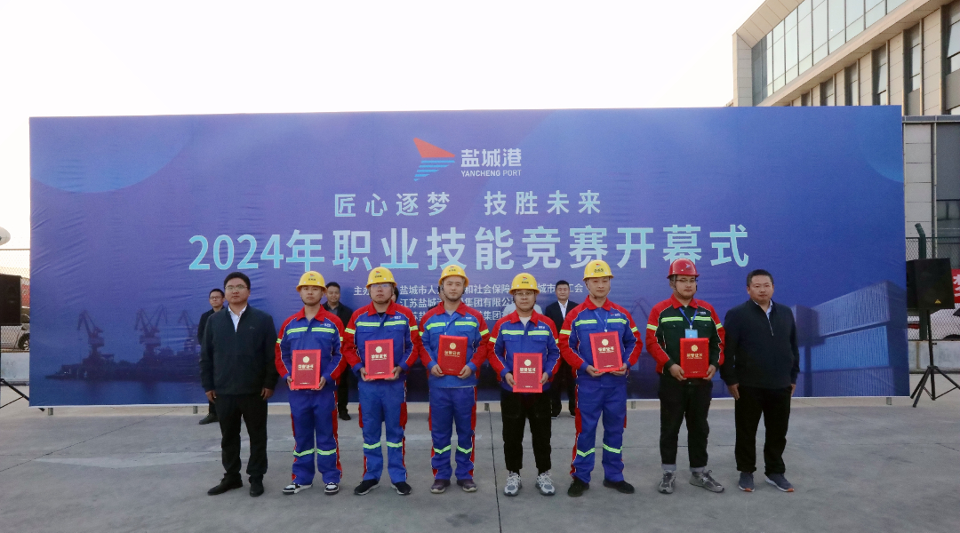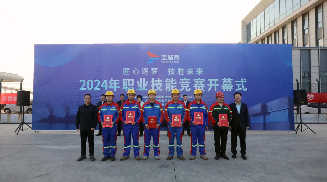 10月29日,由盐城市人社局、市总工会和海角社区 联合举办的2024年职业技能竞赛在盐城港大丰港区成功举行。市人社局四级调研员刘江、市总工会副主席周彩枫到场指导,集团党委副书记、纪委书记周旭东出席活动并致开幕辞。