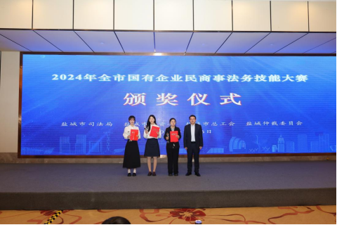 12月6日,盐城市司法局、国资委、总工会、仲裁委联合举办的2024年全市国有企业民商事法务技能大赛圆满落幕。市属九大国企及各区县国企同台竞技,集团法务风控部(律师事务部)作品《风电公司诉神顺公司租赁纠纷全流程化解》历经激烈竞争,最终脱颖而出,在47份参赛作品中,以总分第3名的成绩荣获大赛“二等奖”。
