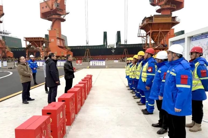 同时,陆帅勉励大家面对春节假期间的经营保障要毫不松懈,牢记安全是我们的责任,也是我们的荣耀,要“一仓一仓货物地盯,一个环节一个环节地抓”,严格落实港口运营保障各项措施,辛勤付出,无私奉献,全力保障春运期间的生产经营安全、平稳、顺畅,以实际行动践行盐城港的使命、愿景、价值观。
