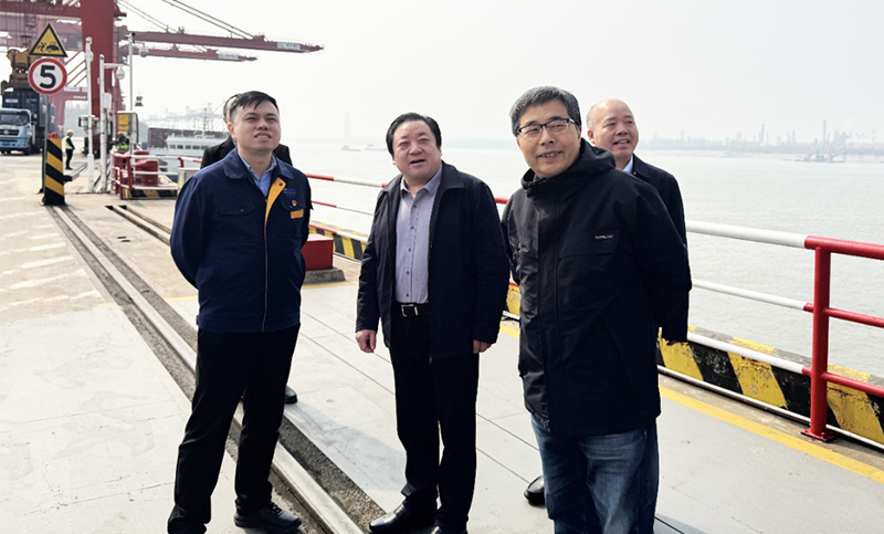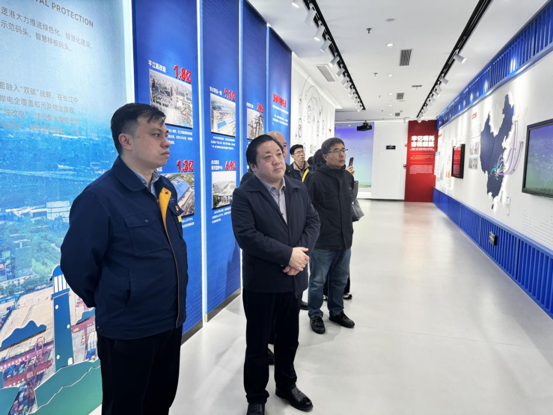周正雄一行实地参观了武汉港十周年展厅,详细了解武汉港的发展历程和取得的成就。随后,一行人前往阳逻港区集装箱码头现场,近距离考察了港区泊位规模、生产运营以及公铁水联运开展等相关情况。
