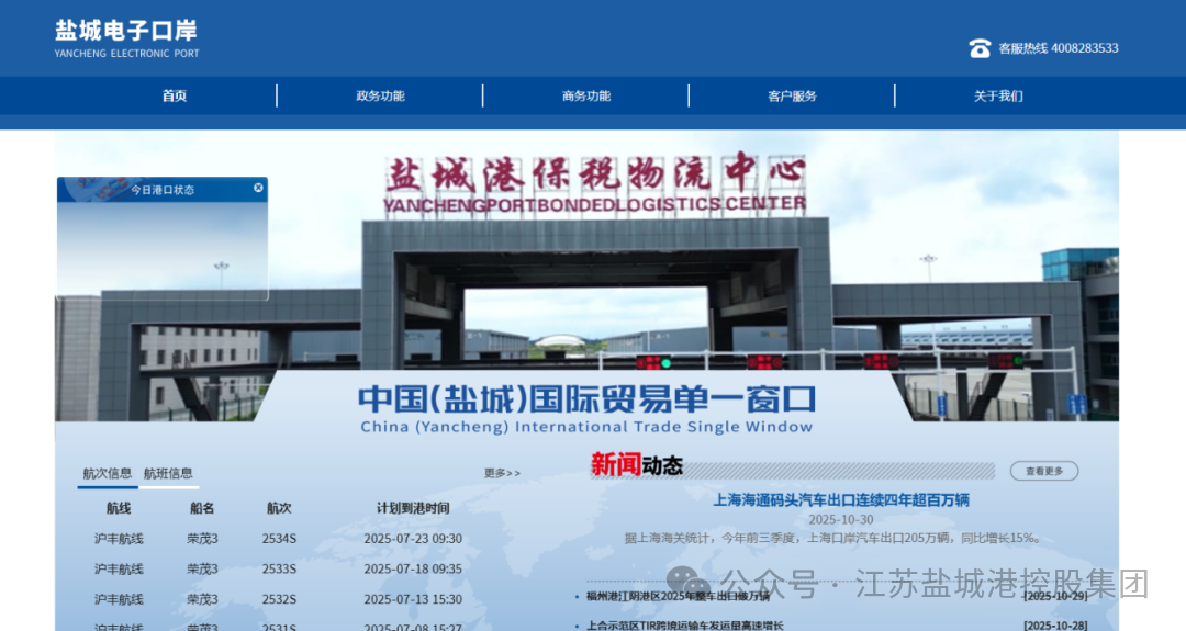 扎实推进电子口岸平台和盐城港一体化网上营业厅平台建设与服务优化,初步实现了线上线下一体化协同,为港口业务的数字化转型与融合发展奠定了坚实基础。截至10月,盐城电子口岸累计收录报关单量11538票,同比增长13.5%,货值569.03亿元,同比增长19.3%。平台服务覆盖进出口外贸企业575家、船货代企业15家,主业运营稳中有进,服务质量持续提升。