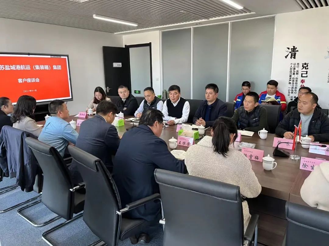 11月12日下午,航运(集装箱)集团召开年度客户座谈会,邀请江苏坤歌智能科技、阿特斯阳光电力等众多合作客户企业代表到场参会。本次会议以“协同合作、共促发展”为主题,展示了航运(集装箱)集团2021年期间在航线开辟、码头建设、市场开拓等方面取得的工作成效,同时广泛征集2022年度工作部署实施意见。