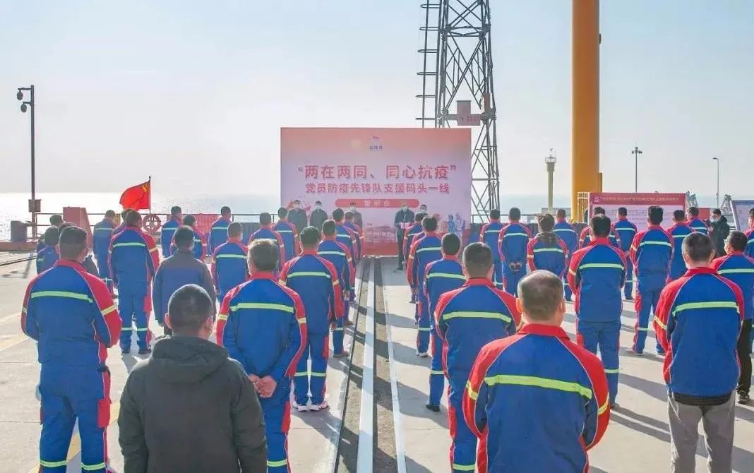 由大丰港区、航运(集装箱)集团64名党员组成的防疫先锋队支援码头一线