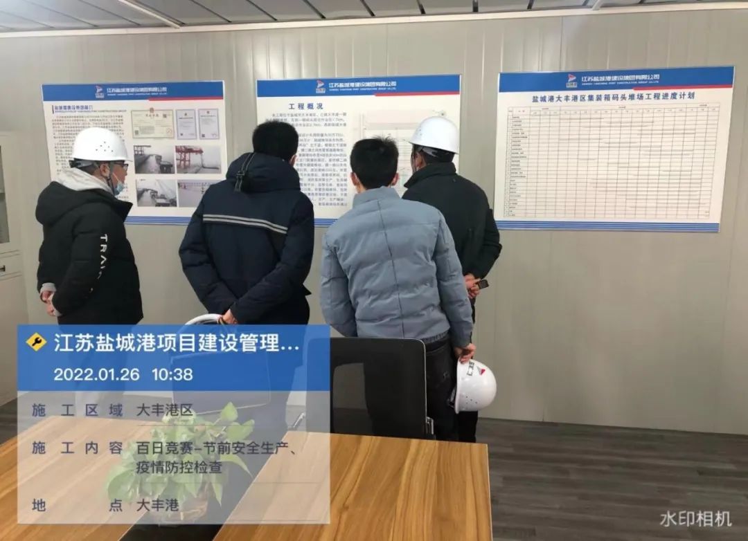 1月26日上午,项目公司分管安全领导及相关职能部门在大丰港区集装箱堆场项目以及集中隔离点项目通过实地检查、听取汇报等方式开展风险隐患排查工作,重点检查了临时用电、脚手架搭设、冬季防火防冻、材料堆放、疫情防控等易存在安全隐患部位的安全管理与安全防护措施的落实情况。从检查结果看,总体上各项目部对安全生产工作高度重视,安全生产责任制度落实、任务明确、措施得力。