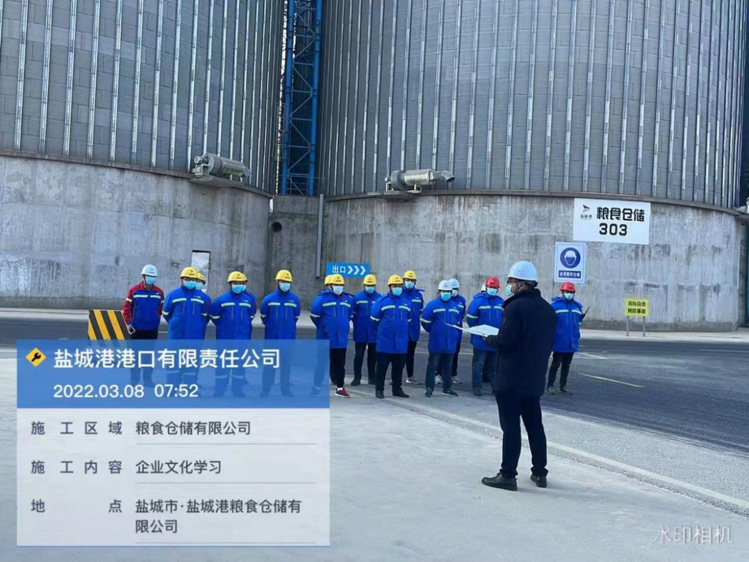 盐城港粮食仓储公司以打造盐城港铁军为目标,提倡并执行军事化管理程序,严格执行“早晨会、晚汇报”制度,创新性增加集团海角社区文化