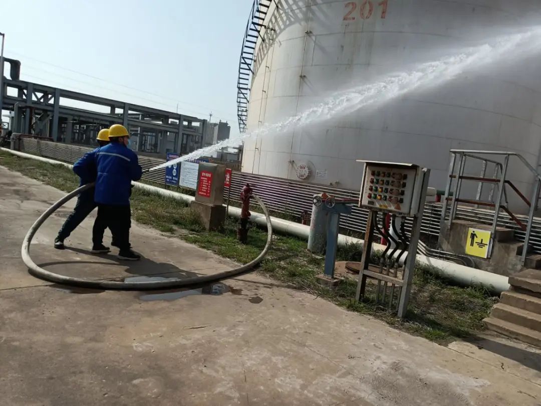 公司总经理准确获取关键信息后,立即启动应急预案,镇定指挥,油库主任带队展开紧急救援工作。全体人员按照应急救援小组分工,迅速找准自己的“角色”,穿戴好防护服、携带好救援物资,奔赴“事故现场”展开紧急救援,一切工作如火如荼,有条不紊。