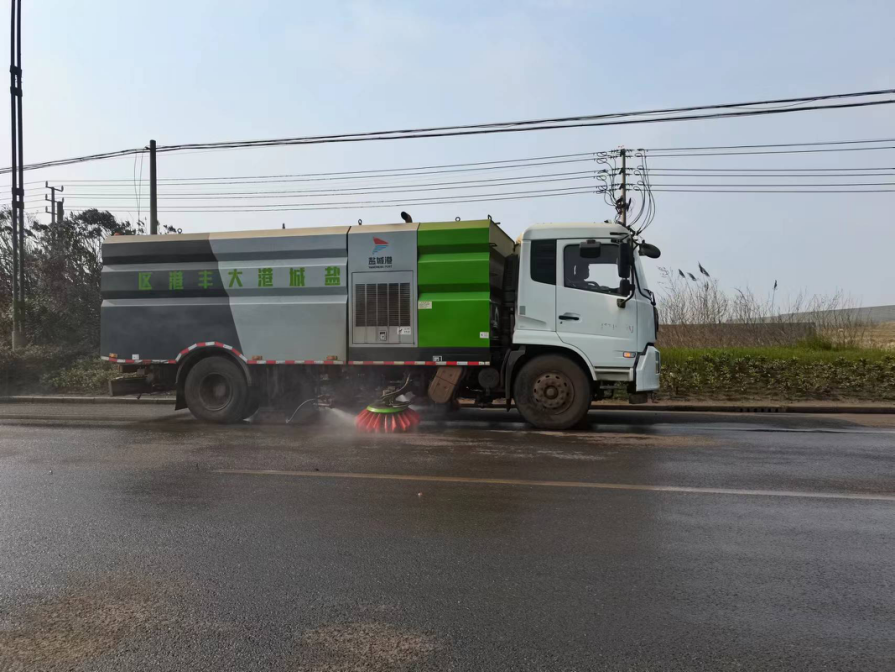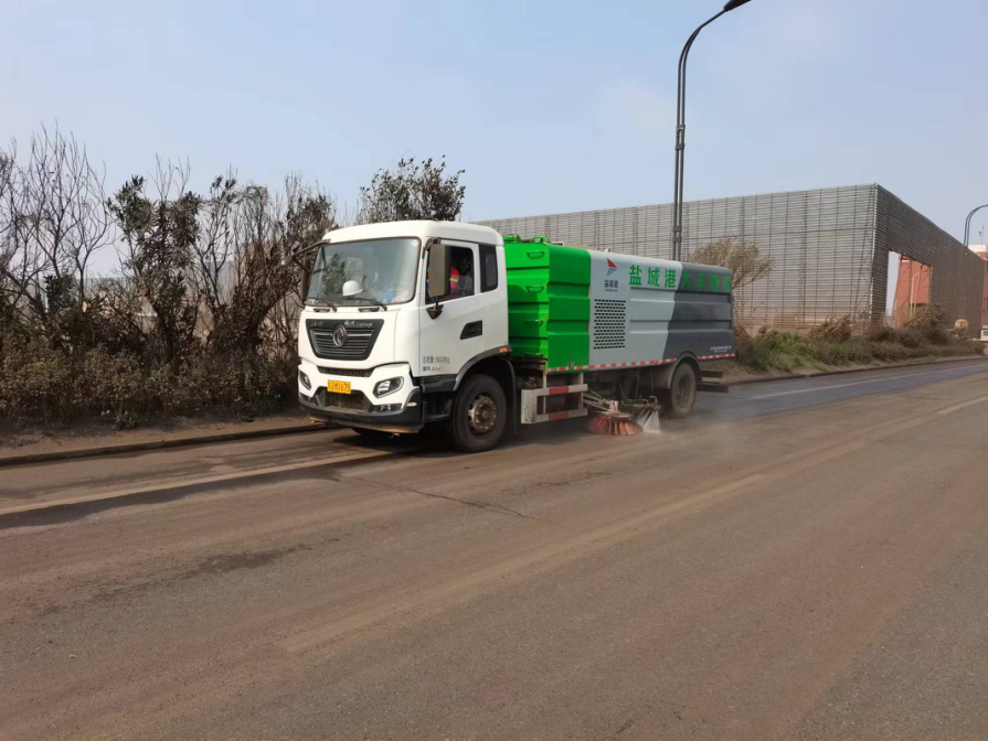 Hi!大家好。我是来自盐城港港口公司的一台环保洗扫车,别看我和普通环保车的外观差不多,我的工作任务可和它们不一样,我每天要对盐城港大丰港区道路进行洗扫作业和防尘抑尘。我是清洁工作中的好帮手,每天都让港区恢复焕然一新。