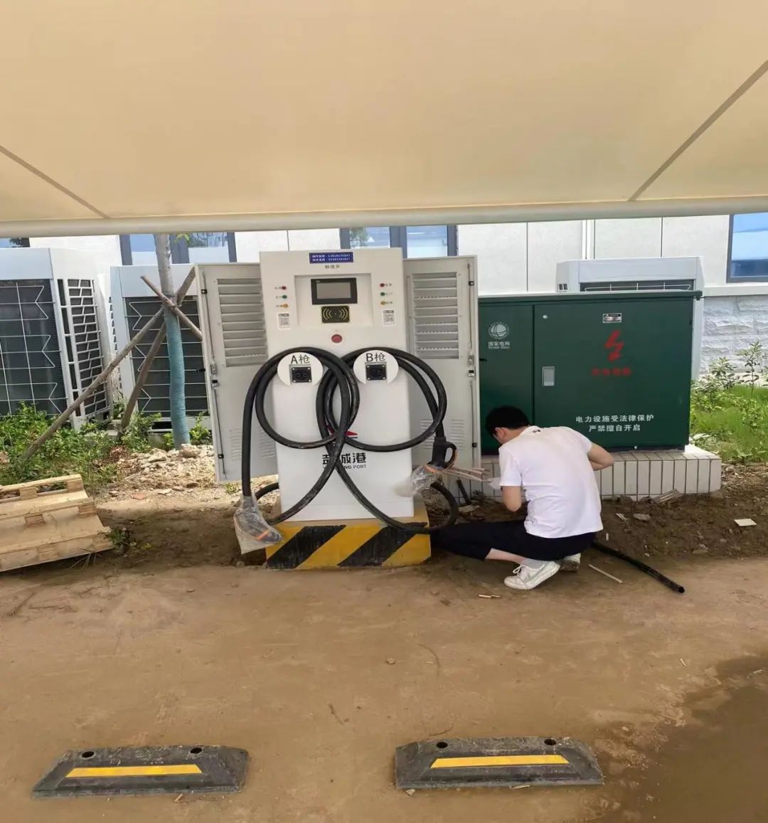7月4日,亭湖港区的电动汽车充电站完成调试,正式投入使用。