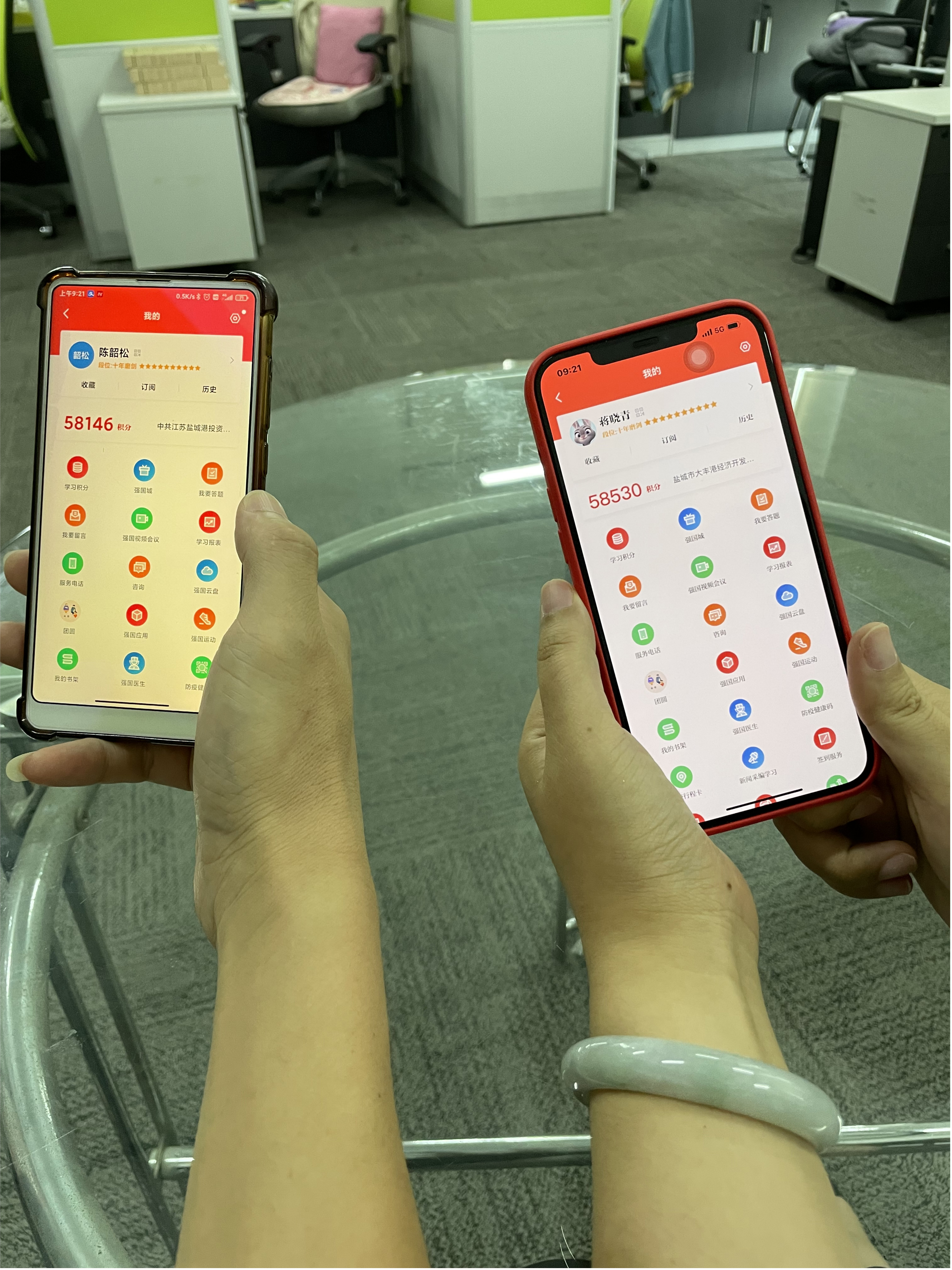 除了“学习强国”APP之外,黄海港城支部充分利用基层党组织统一活动日、“三会一课”等时机,开展双人PK,激发学习热情。