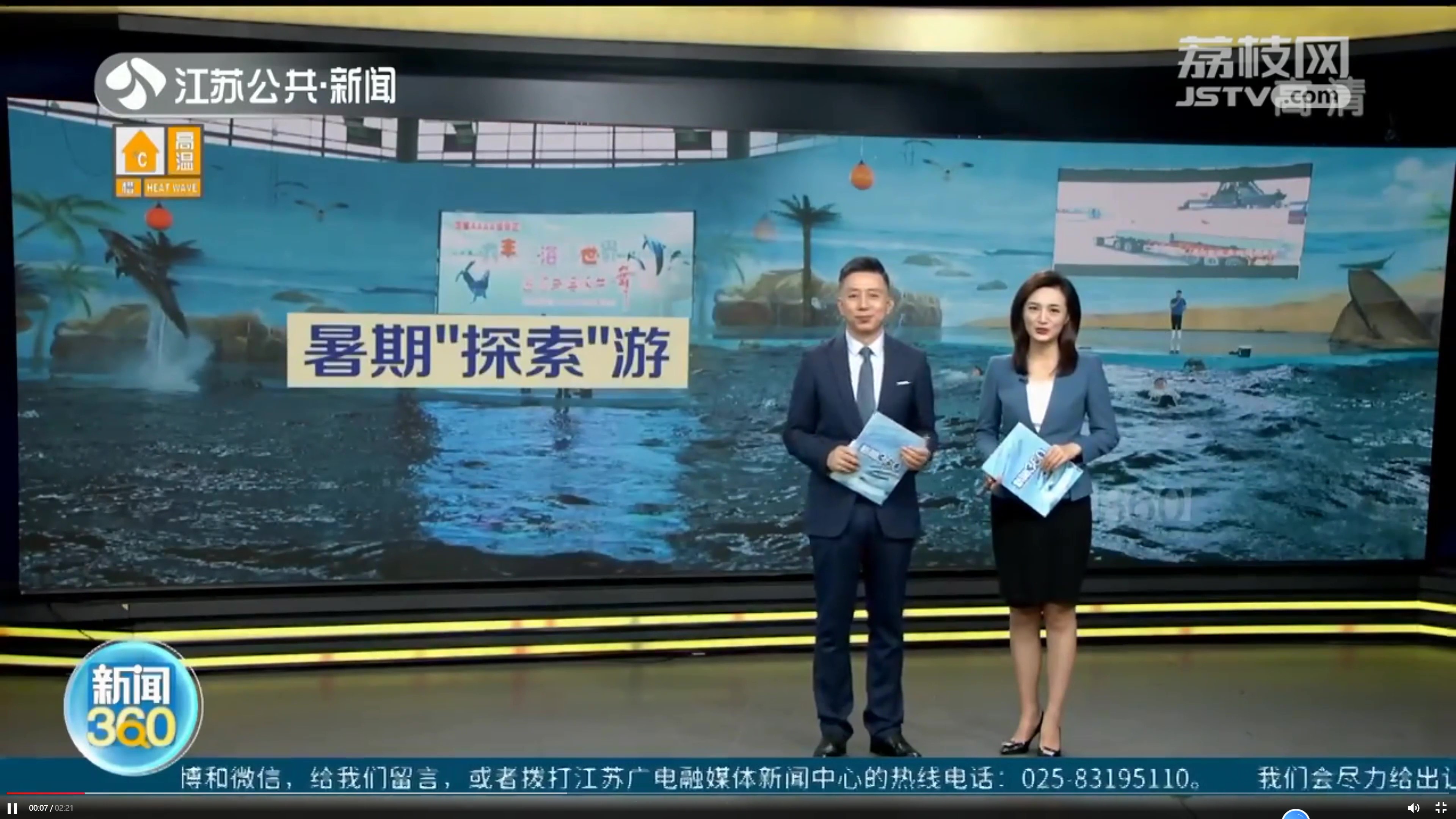 7月15日晚,随着盐城港海洋馆的全景航拍映入眼帘,一则夏季避暑清凉游的新闻在江苏省卫视频道《新闻眼》、江苏省新闻·公共频道《新闻360》栏目先后播出。