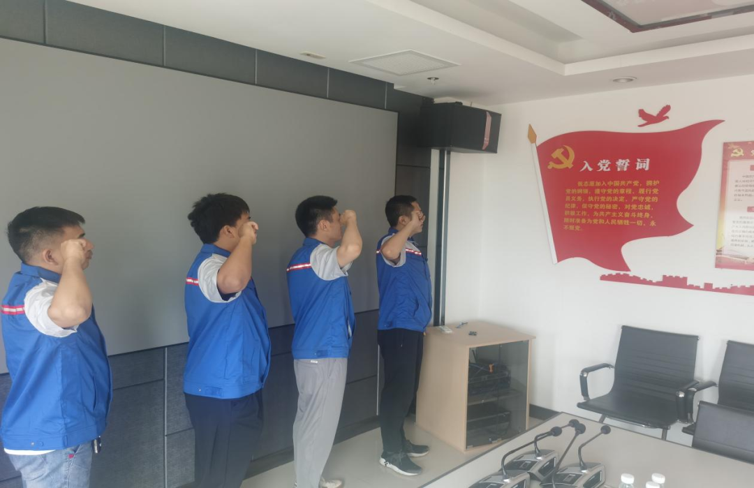 面对鲜红的党旗,青年党员们高举右手,重温入党誓词。初心如磐,使命在肩,一句句铮铮誓言充分提升了团队的凝聚力,青年党员们共同表示今后将以提升服务质量为目标,以吸引优质货源提高吞吐质量与数量为着力点,不断为打造建设优质的沿海港口服务示范模块贡献力量。