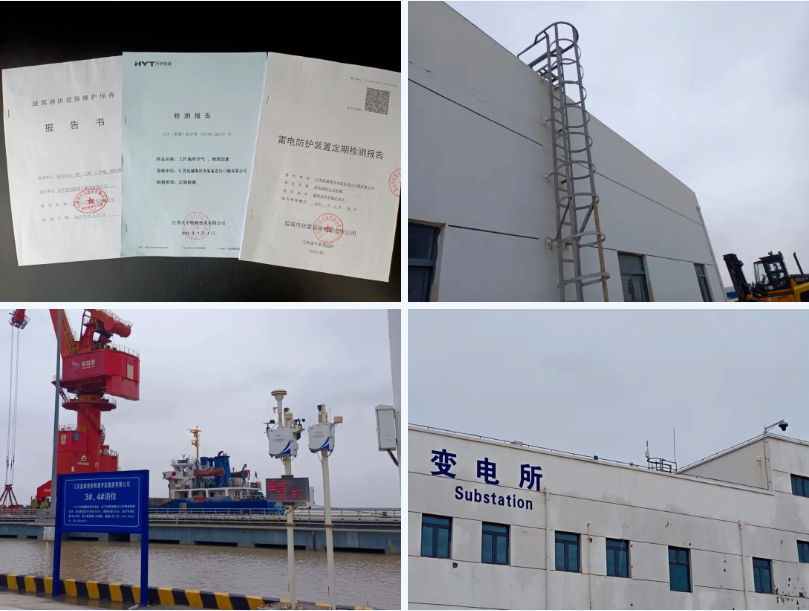 按照《职业病防治法》规定要求,射阳港区对港口职业场所设施、应急救援设备和个人防护用品等,明确专人负责,开展经常性维护、检查,定期测试其性能和效果,确保处于正常状态。定期对港区设备设施进行防雷检测;委托有资质的第三方单位进行职业环境危害检测;在港区各作业点位安装粉尘在线监测系统,实时监控港区空气质量。动员全员参与“隐患随手拍”活动,齐抓共管,不断提升软、硬件条件,夯实港区职业卫生管理基础。
