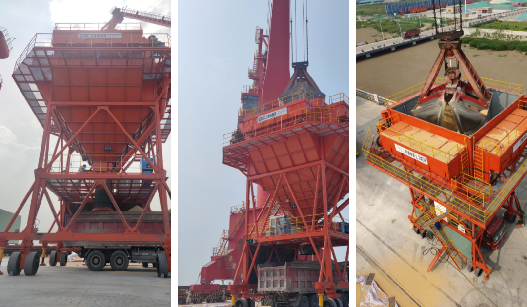 由于粮食作业粉尘较大,对环境造成污染较为严重,为确保大轮接卸过程安全顺利且符合环保要求,响水港区启用了防尘料斗。本次作业采用的2台防尘料斗是响水港区采购的环保利器,自重76吨,斗容量达50立方,全身红色,采用负压抑尘系统,整机处理风量高达72000立方/小时,过滤面积高达1200平米,理论除尘率高达90%,是名副其实的除尘悍将!
