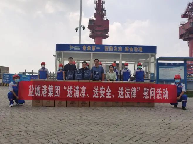 盐城港射阳港区党总支坚持用心用情为群众办实事,从大局着想,从细节着手,积小成为大成、积小胜为大胜,不断增强员工群众的获得感和幸福感。港区党总支先后组织党员骨干送安全和送法律到生产一线及慰问活动5次、开展志愿服务3次,组织为码头一线员工职业病体检1次,夏天高温季节每天为生产一线送去清凉饮料,及时看望生病、生育住院职工,走访慰问住院职工及家属,改造解决1-5楼自来水经常停水问题,协调解决疫情封闭期间居住在港口的员工生活用品等问题,从细微处暖民心、聚人心。