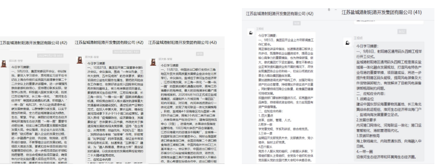 思想的统一引领行动的统一。近阶段,重点围绕应知应会常识,每天早上九点,港区综合部专人将摘编好的应知应会知识点发布到工作群,供所有员工学习。内容涵盖领导重要讲话、时政热点、海角社区文化 、岗位职责等,员工结合自身工作安排进行学习。员工们纷纷表示,比起自己平时杂乱学,重点知识点的汇总学习犹如“启明星”,轻松从“要我学”转变为“我要学”,在学习中不断反省自身不足,查漏补缺立行立改,为高效率高标准完成工作夯实思想根基。