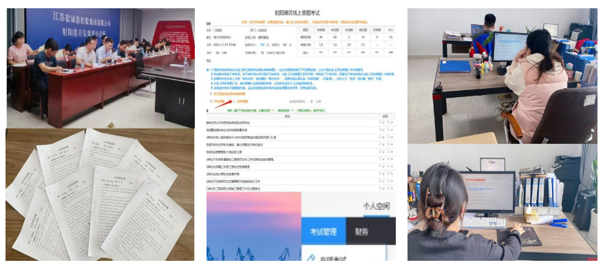 为保证学习成效、检验员工学习成果,促进每位员工应知应会知识入脑入心,每周五组织全体员工进行闭卷考试。考试内容以每日应知应会知识为主,侧重考查员工对知识的理解与掌握情况,阅卷评分后在全公司范围内通报公布,同时将考试成绩纳入绩效考核。OA同步上线考试系统,员工可随时随地进行线上测验。把考试作为检验学习成果的“试金石”和查找不足的“检测仪”,真正促使员工通过学习提升思想意识、提升岗位技能、提升履职尽责的行动自觉,立足本职、奋发作为,为盐城港高质量发展争作贡献。