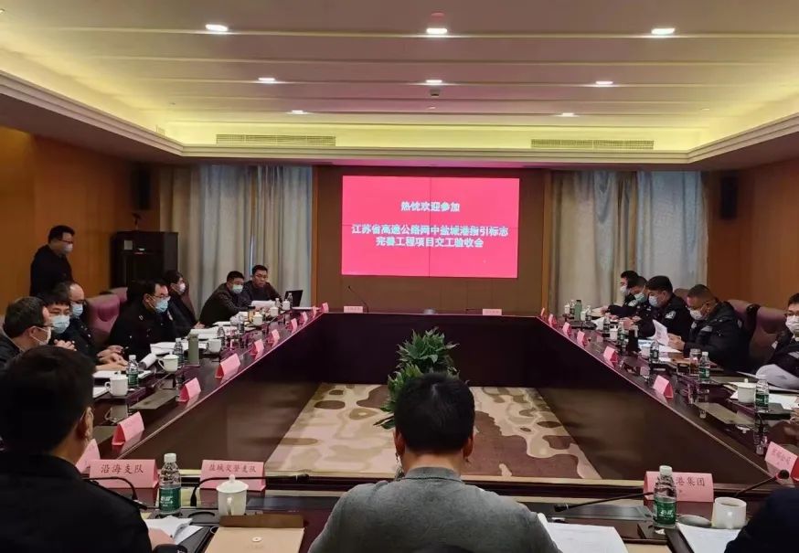 11月30日,盐城港实业发展集团会同盐城交通运输执法总队、盐城交警支队、高速公路管理公司以及设计、监理、施工等相关单位参加江苏省高速公路网中盐城港指引标志完善工程项目交工验收会议。