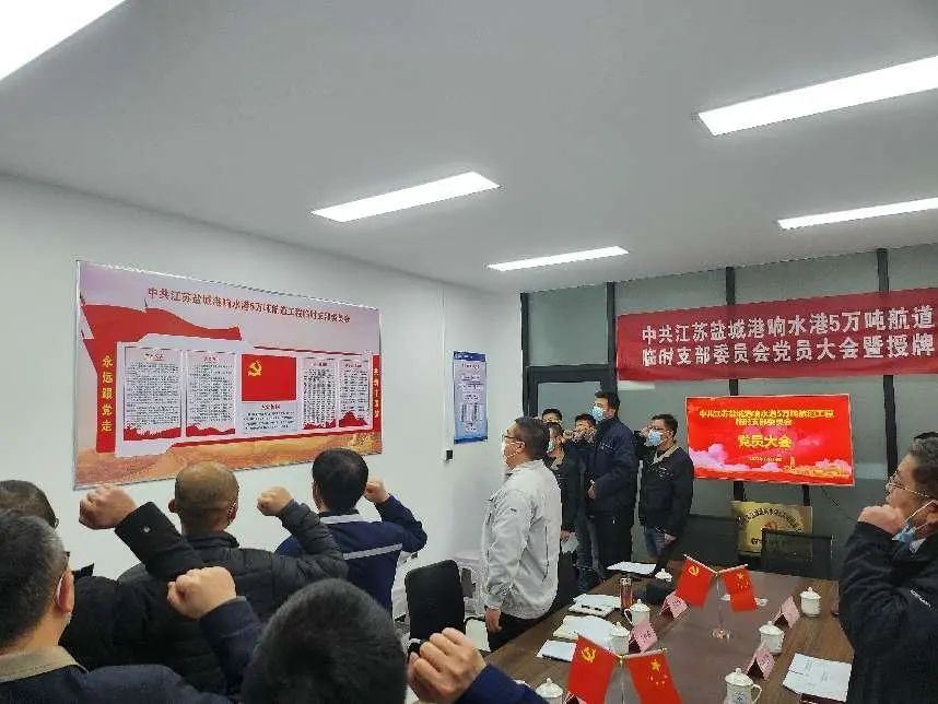 近日,盐城港项目管理公司组织各项目参建单位,正式成立响水港5万吨航道工程临时党支部。该临时党支部是项目管理公司继射阳港区3.5万吨航道临时党支部之后成立的第二个临时党支部,是公司“党建+”赋能项目建设的又一有力见证。