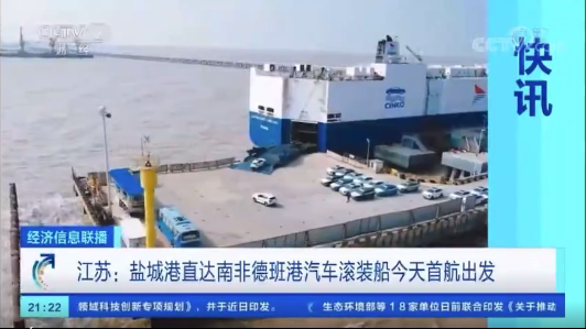 11月1日,盐城港至南非德班港国际直达汽车滚装航线开航仪式成功举行,标志着盐城港籍汽车滚装船首次走出国门,为国产汽车出口提供了新的出海通道,同时也为全市外向型经济发展提供了有力支撑。同时,该航线开航报道顺利登上央视新闻,进一步扩大了盐城港的影响力。