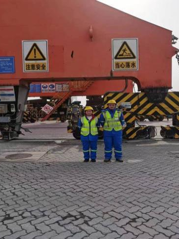 薛干雷和高娟夫妻俩都是滨海港区6#门机同岗不同班次的操作员,两人分别于2014年、2019年入职于滨海港码头一线。曾在码头连续工作4年的高娟,门机操作业务娴熟有致,保畅经验丰富,是大家遇到业务难题时第一时间想起的“师姐”。而性格温和的薛干雷在工作上细心严谨,处理操作难题稳妥有序,是班组现场保畅工作中的得力助手。他们所辖的门机位于1#码头最西边,是历年来抓挖高效的关键站点。为全力保障滨海港区码头吞吐量的有效提升和安全畅通,薛干雷和高娟每年主动放弃节假日休息时间高达20余个工作日,全身心投入到忙碌的生产保畅工作中去,用爱和坚守共同书写最美的“敬业福”。