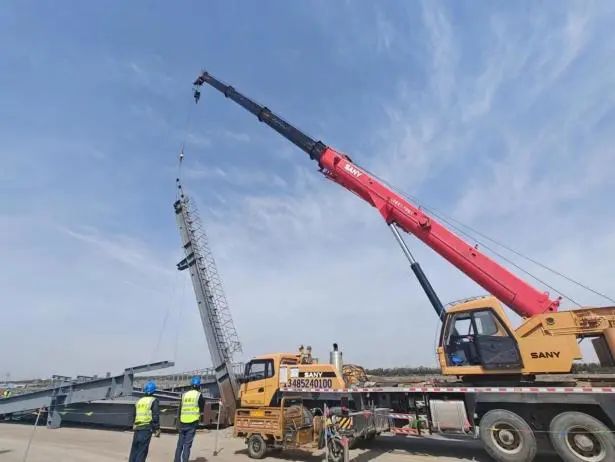在机械及司号声中,第一根预制钢架被徐徐吊起,稳稳地安装在承台基础上,由项目咨询公司代管的大丰港综合仓储物流项目钢结构工程首吊成功完成,标志着该项目正式进入安装施工阶段,开启建设新篇章。