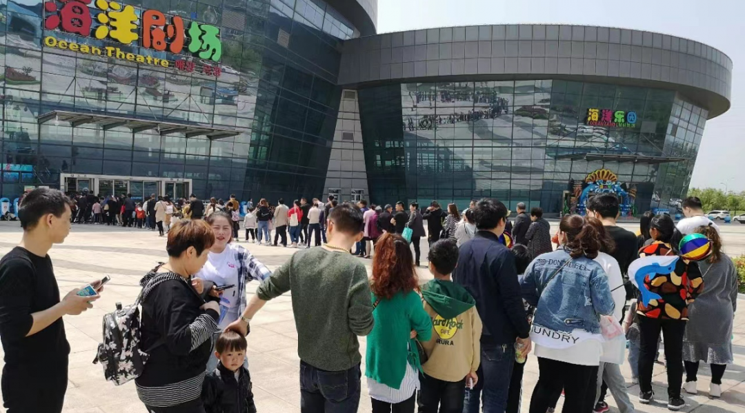 在盐城港海洋世界景区,慕名而来的游客一大早就排起了长长的队伍。海豚们用跳跃、遨游专程欢迎游客们的到来,伴随着饲养员的指令,海豚们精准做出各种高难度表演,让游客们流连忘返,不忍离开。