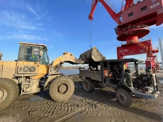 响水港区灌江码头前沿1-4#泊位淤泥沉积严重,导致部分船舶无法顺利靠港,影响正常生产作业。响水港区灌江港务分公司聚焦提质增效,精准实施创新举措,利用两台废旧的梅花抓斗开展清淤工作。梅花抓斗在短时间内可以抓取大量淤泥,准确控制抓取的深度和范围,确保清淤工作的精确性和高效性。以往委派外部施工单位进行清淤作业,耗时较长,费用较高,本次自主清淤,通过门机、装载机、渣土车的连轴运转,仅用时10天,就完成了码头前沿作业区的淤泥清理,节省清淤费用约27万元。
