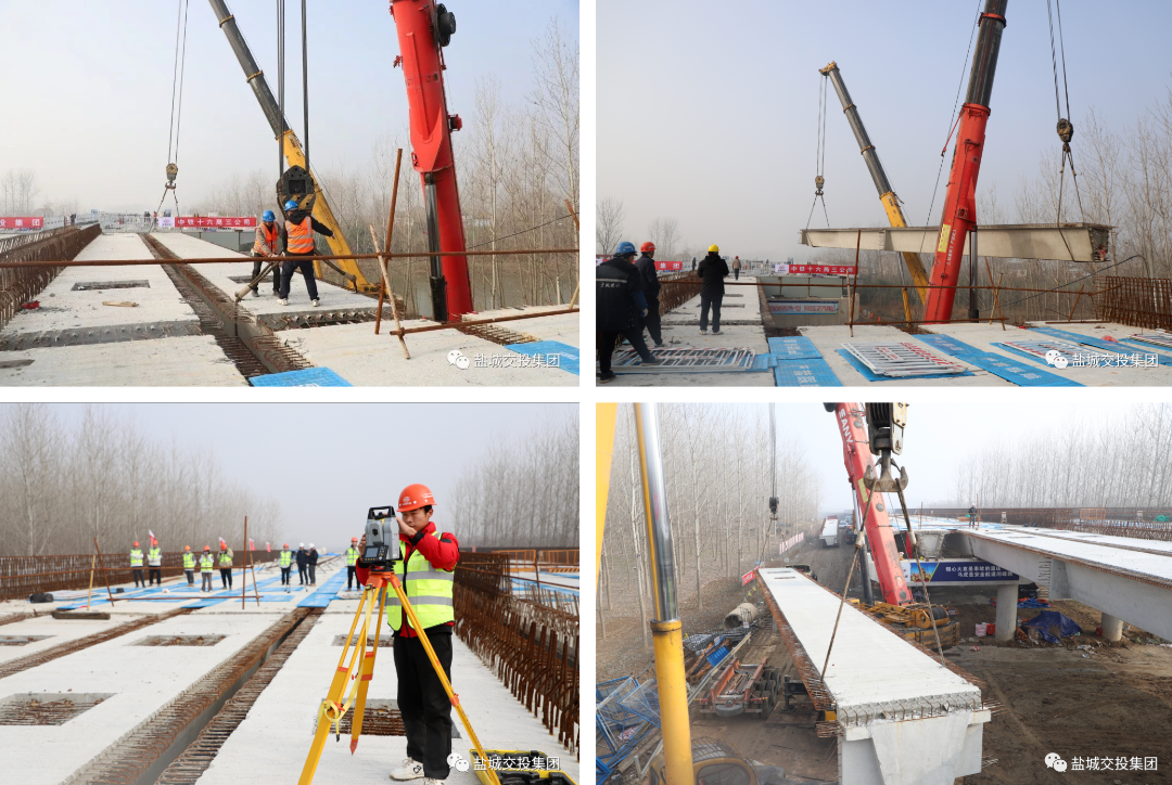 此次贯通的废黄河大桥全长646米,跨越黄河故道生态管控区,为全线控制性工程。为最大程度减少施工对周边生态环境的影响,项目管理团队积极践行绿色发展理念,以(37+55+37)米钢箱梁的方式跨越黄河故道,并采用装配式预制箱梁“搭积木”的方式建造大桥的引桥部分,架设装配式箱梁共136片。