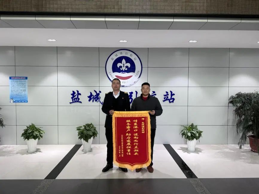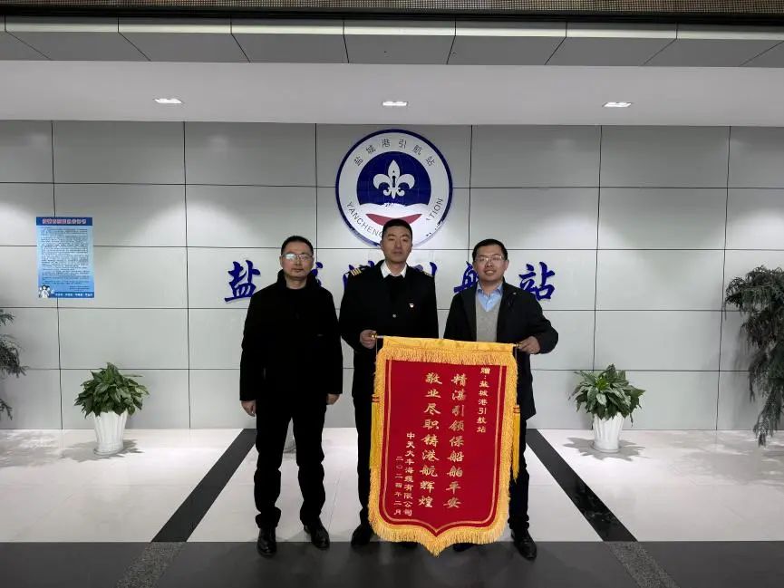 盐城港引航站收到江苏盐城港智慧港口有限公司、中天大丰海缆有限公司、盐城捷顺船舶代理有限公司的三面锦旗