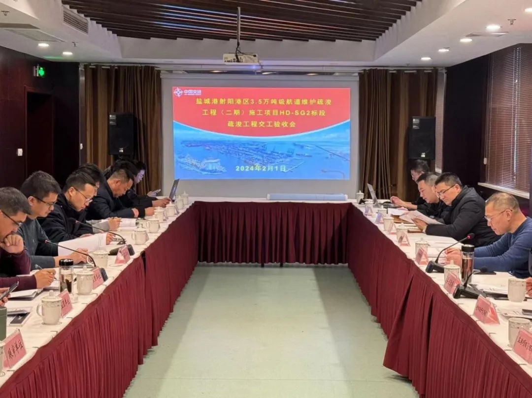 近日,盐城港射阳港区3.5万吨级航道维护疏浚工程(二期)正式通过交工验收,射阳县交通局,集团项目管理部、项目公司以及建设、监理、施工、测绘、跟踪审计单位相关负责人参加本次验收会。