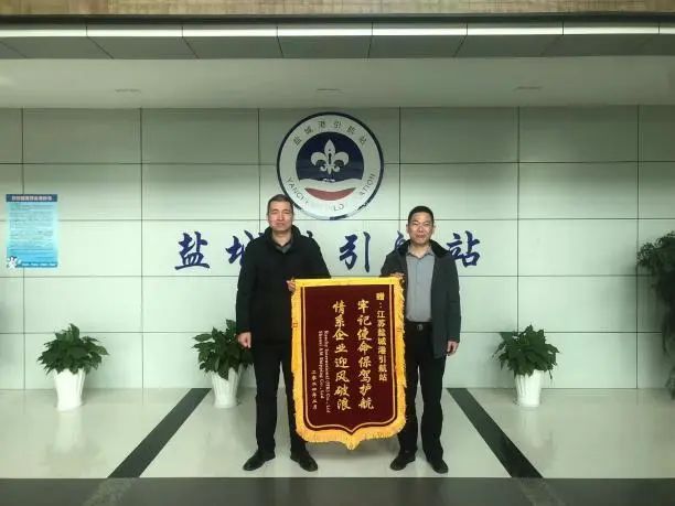 近日,“CL天京”轮船舶船东香港汭沣航运有限公司专程将“牢记使命保驾护航 情系企业迎风破浪”的锦旗送至盐城港引航站,对我站提供的优质引航服务表示衷心感谢。